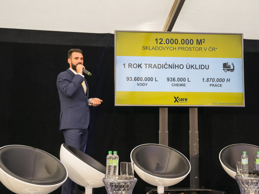 Ředitel X-Care Robotics Filip Zima měl v rámci bloku Trendy a inovace v dynamickém prostředí vstup nazvaný Změna paradigmatu úklidu: Roboti a udržitelnost. V něm mluvil především o paradigmatu mokrého úklidu, protože neuvěřitelných 93 600 000 litrů vody v ČR za 1 rok potřeba jen k úklidu skladových prostor. A když k tomu přidáme ještě 936 000 litrů použité chemie a 1 870 000 hodin práce, které by se daly využít jinde a efektivněji, dostáváme se ke skutečně astronomickým číslům.